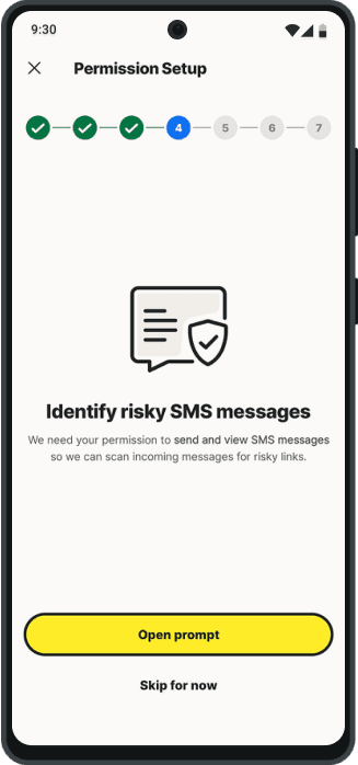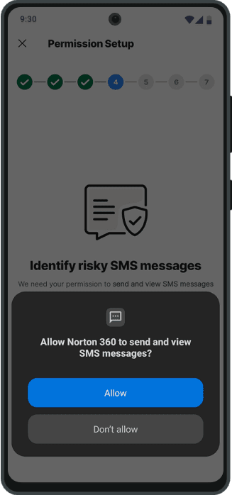 Silakan berikan izin semua akses yang dibutuhkan agar Norton 360 dapat mengaktifkan fitur keamanannya.