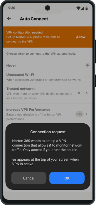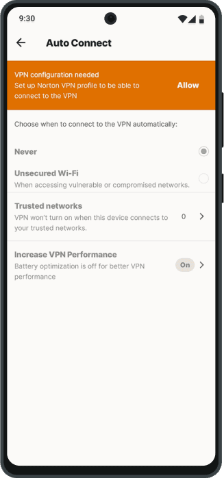 Silakan berikan izin agar Norton 360 dapat mengaktifkan fitur VPN Auto Connect
