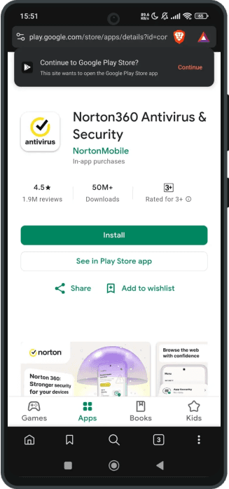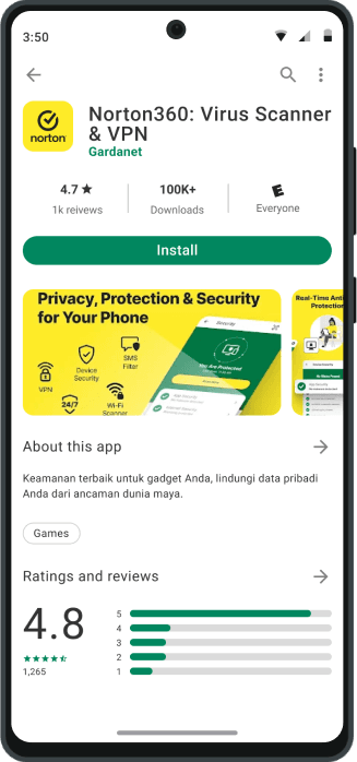 Cari “Norton 360 Mobile” di Google Play Store atau App Store, lalu instal.
