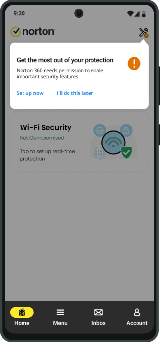Norton 360 memerlukan izin untuk mengaktifkan fitur keamanan penting.