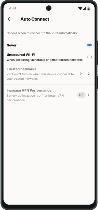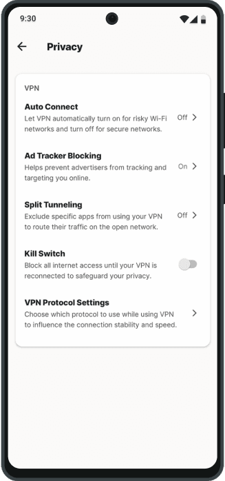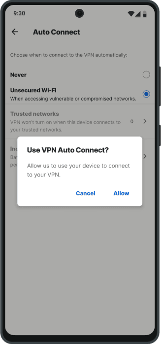 Anda dapat terhubung ke Wi-Fi yang tidak aman tanpa khawatir data Anda akan terkompromikan.