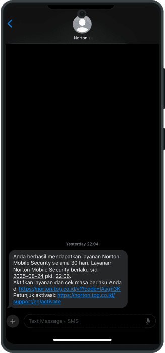 Periksa SMS atau email Anda untuk menemukan tautan aktivasi Norton.